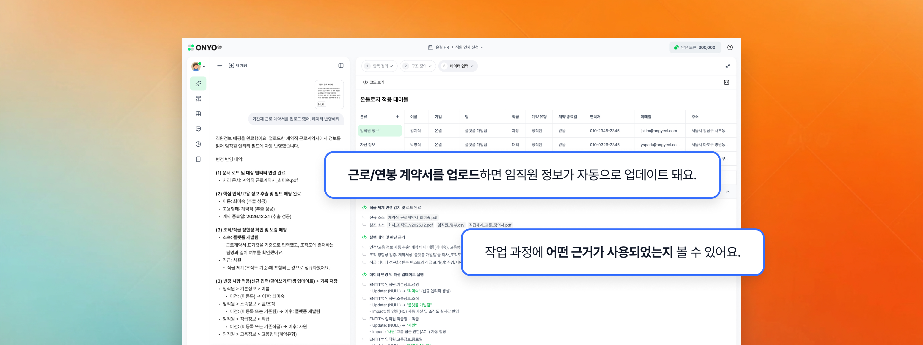 데이터를 연결하면, ONYOAI가 시스템을 자동으로 구성합니다.