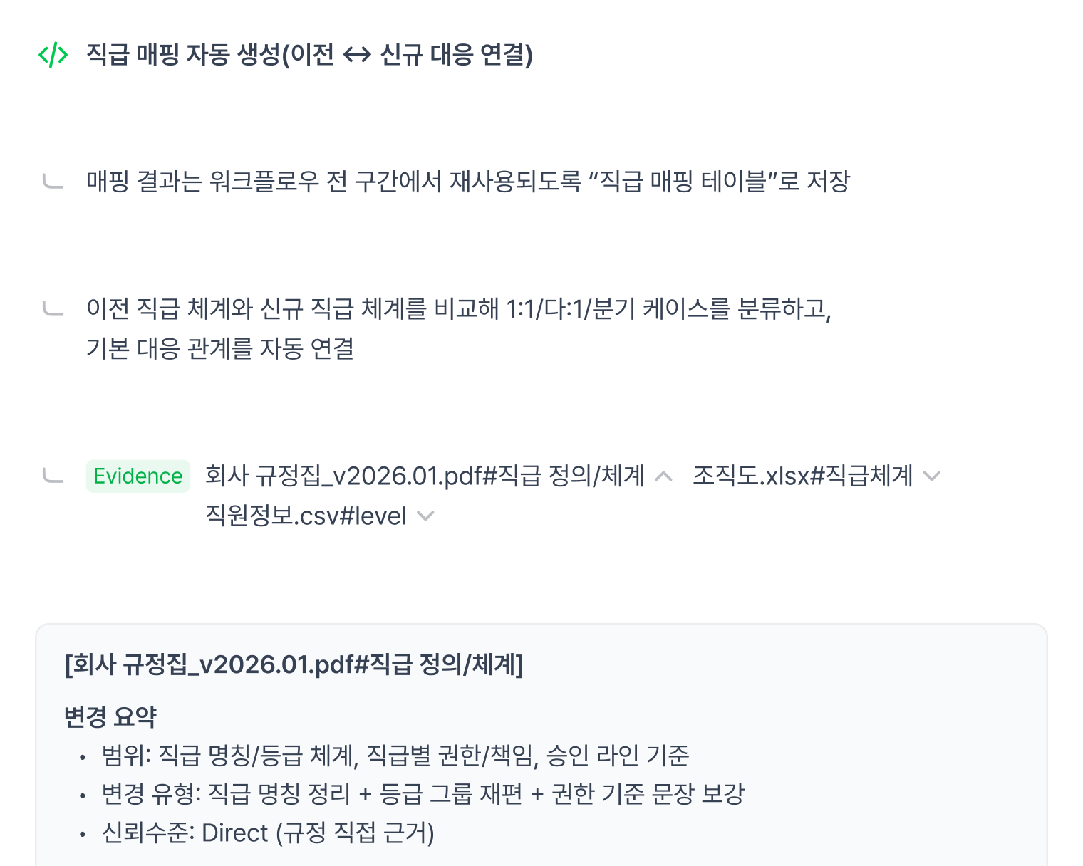 규정을 넣으면 ONYOAI가 승인 로직과 흐름을 자동으로 만듭니다.